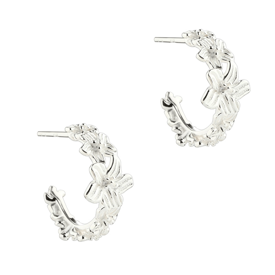 Elegante hoops fra Aqua Dulce, lavet i 925 sterling sølv og udsmykket med fine jasminblomster, der pryder hele øreringen. Blomsternes delikate design tilføjer et feminint og yndefuldt udtryk, hvilket gør øreringene både smukke og søde. De måler 18 mm, hvilket gør dem til en perfekt størrelse til både hverdagsbrug og særlige lejligheder, hvor du ønsker et diskret, men stilfuldt smykke.