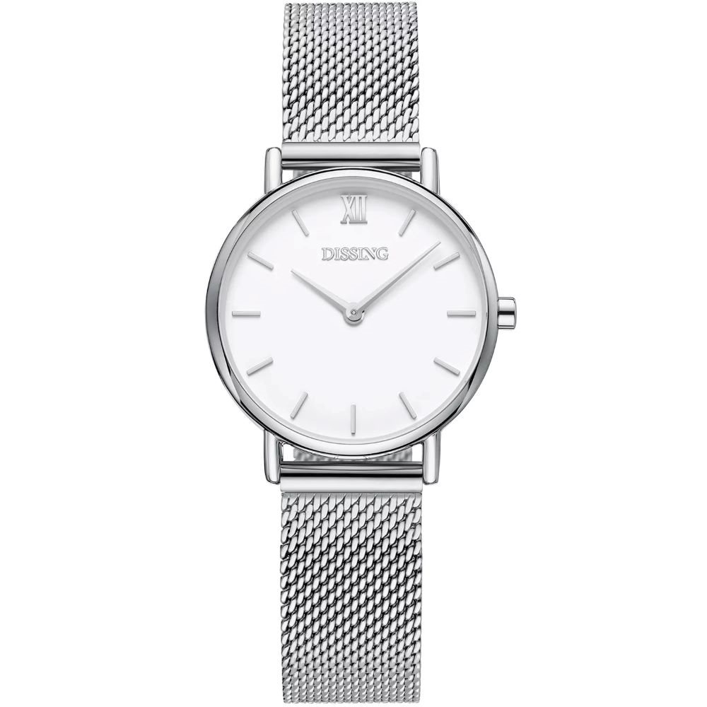 Dissing Classic D1566 uret har en rund urskive med et minimalistisk design, der giver et rent og moderne udseende. Timemarkørerne er enkle, hvilket fremhæver dets enkelhed. Uret er suppleret med en mesh lænke, der tilføjer en smule tekstur. Urkassen integrerer med lænken for et elegant udseende. Dette design er tidløst og passer til forskellige lejligheder.