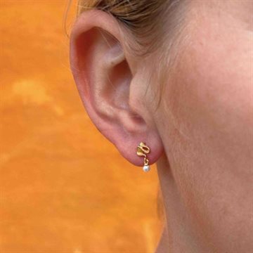 Hedda Petite-øreringene er fremstillet i 18k forgyldt 925 sterlingsølv og udtrykker skandinavisk minimalisme med et moderne twist. De er designet i København, hvor håndværk og æstetik mødes for at skabe tidløse smykker.