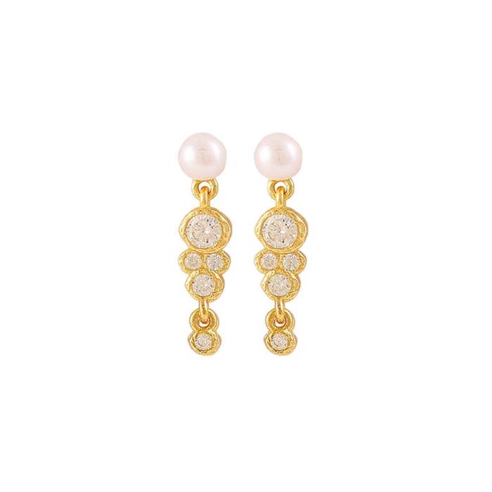 Scarlet-øreringene er fremstillet i 18k forgyldt 925 sterlingsølv og udtrykker skandinavisk minimalisme med et moderne twist. De er designet i København, hvor håndværk og æstetik mødes for at skabe tidløse smykker.