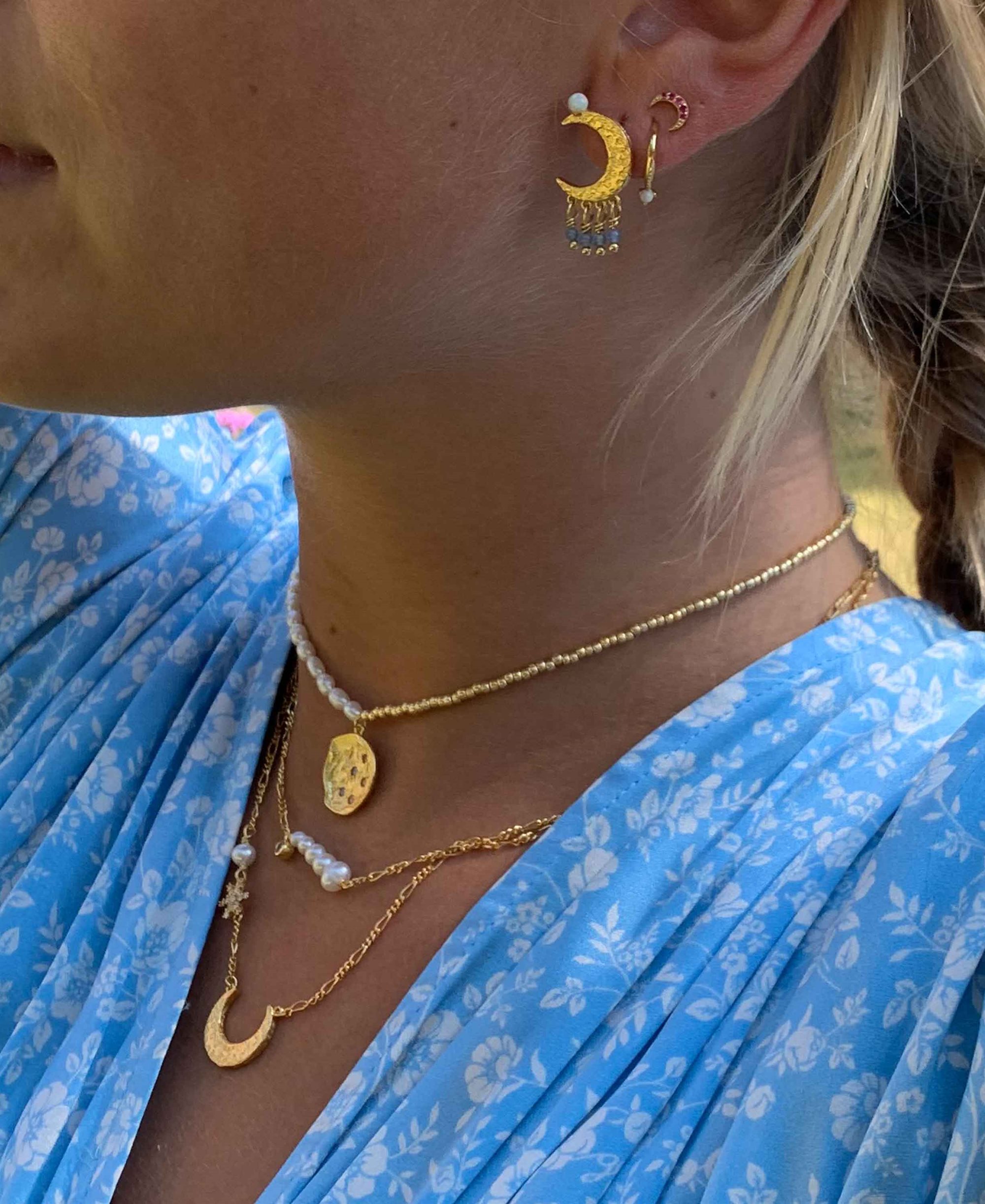White Moon-ørestikken har 5 hvide kubiske zirkoner. Vi synes, den er perfekt at kombinere med andre små ørestikker.