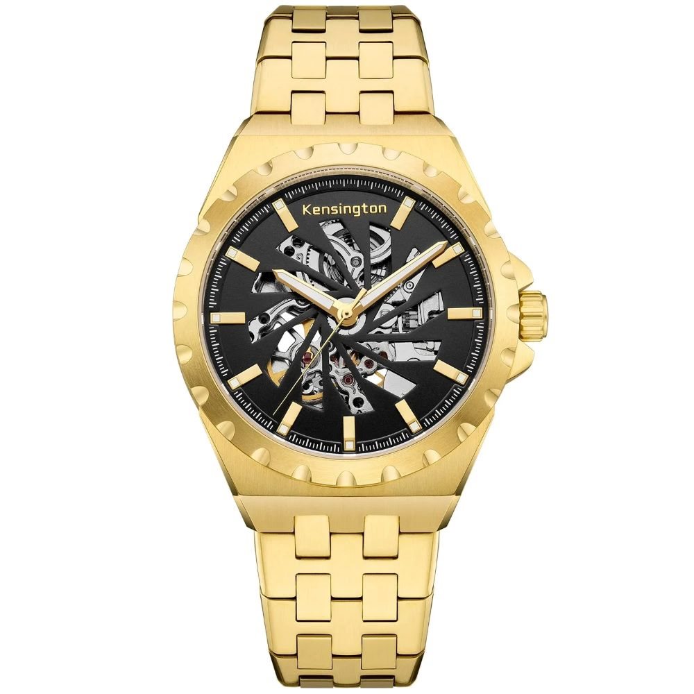 Kensington Infinity K0108 uret præsenterer en imponerende skeleton urskive, der afslører dets detaljerede indre, hvilket giver et moderne og engagerende look. Den runde urkasse er suppleret med en unikt tekstureret bezel, der tilføjer dybde til designet. Uret er udstyret med et automatisk urværk, drevet af SEA-GULL TY2807 kaliber.