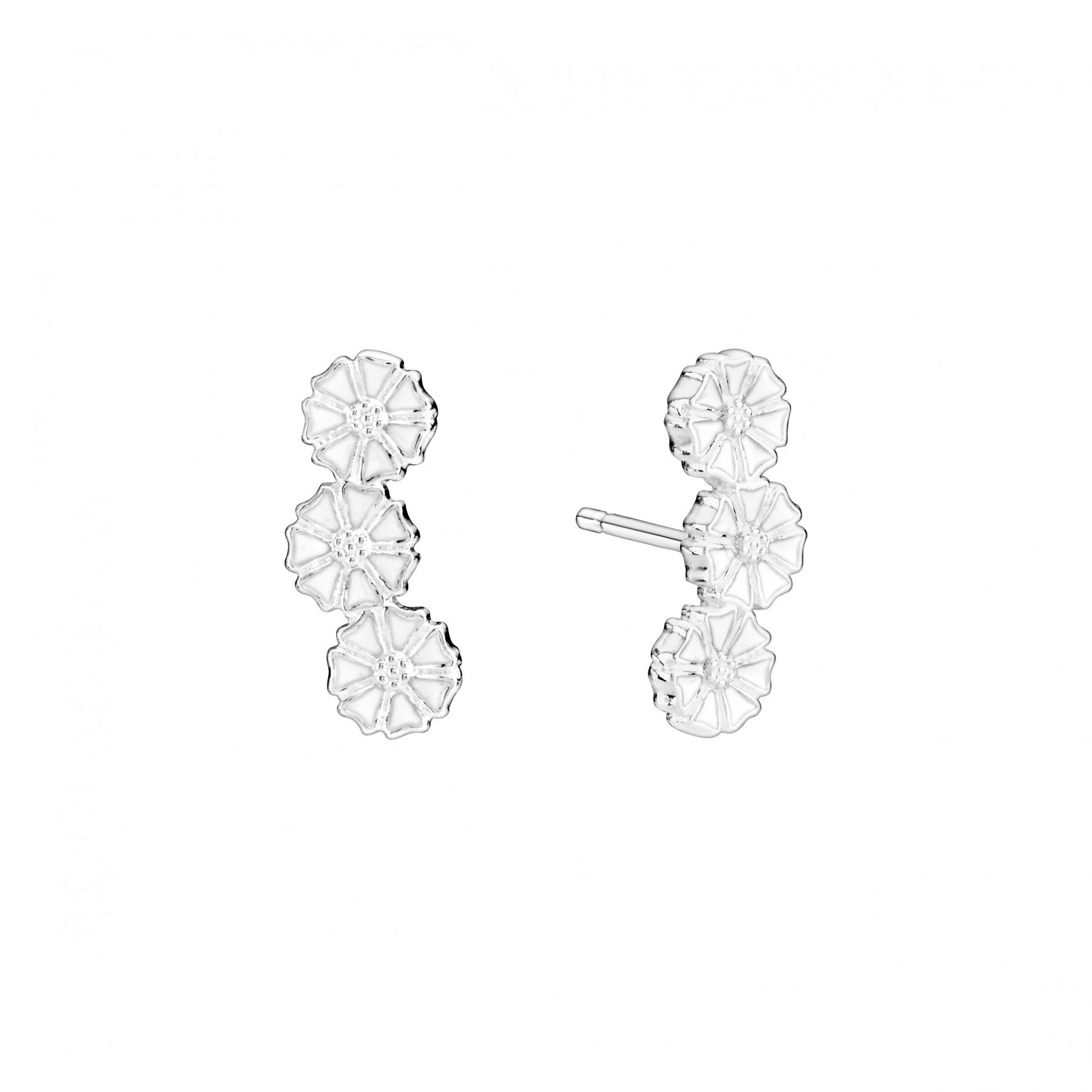Marguerit ørestik 3x5mm hvid emalje 925 - Lund Copenhagen