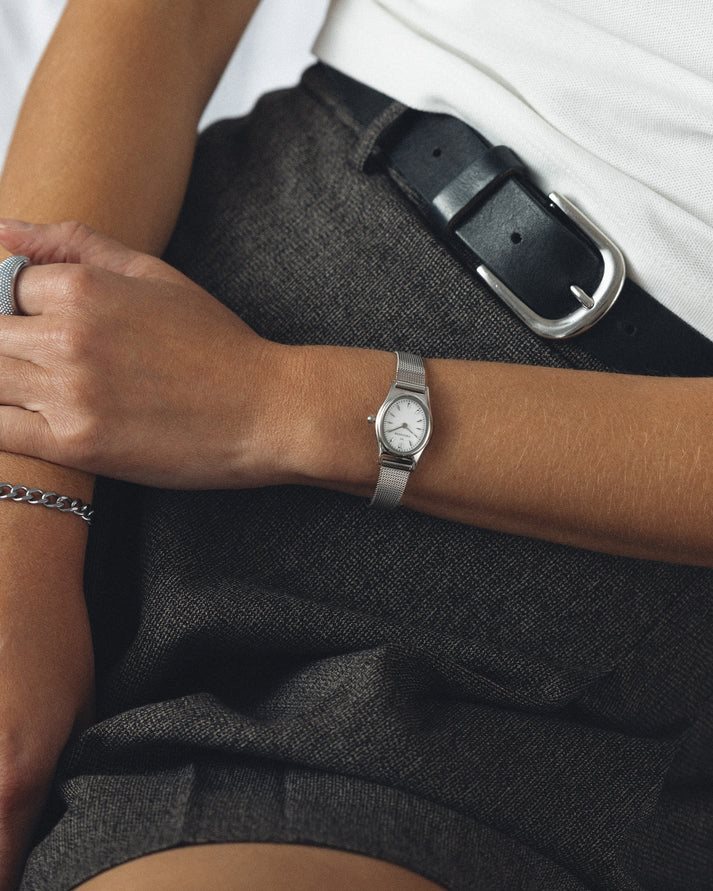 Inspireret af vintageæstetik og moderne design. Et elegant ur med en raffineret mesh-rem, der skaber et tidløst og sofistikeret udtryk.