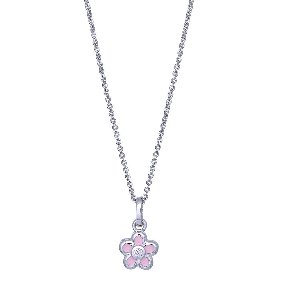 Nordahl - Rhod sølv blomst lyserød emalje + cz kæde 38cm