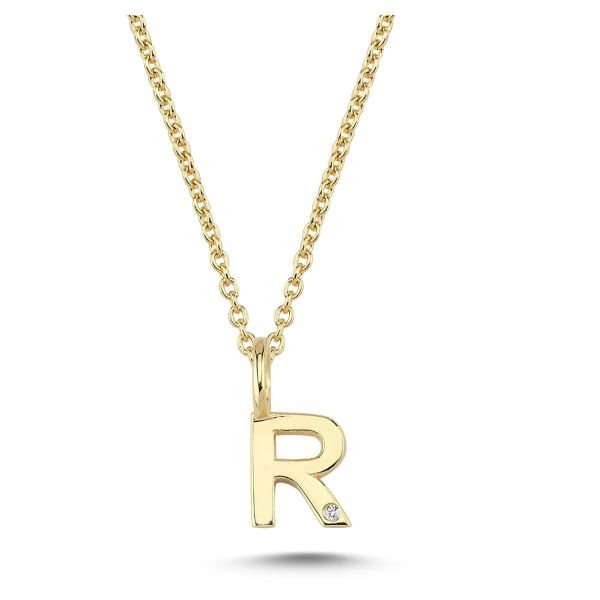 Nuran - Bogstav Vedhæng 14 kt Rødguld m/ diamant | R