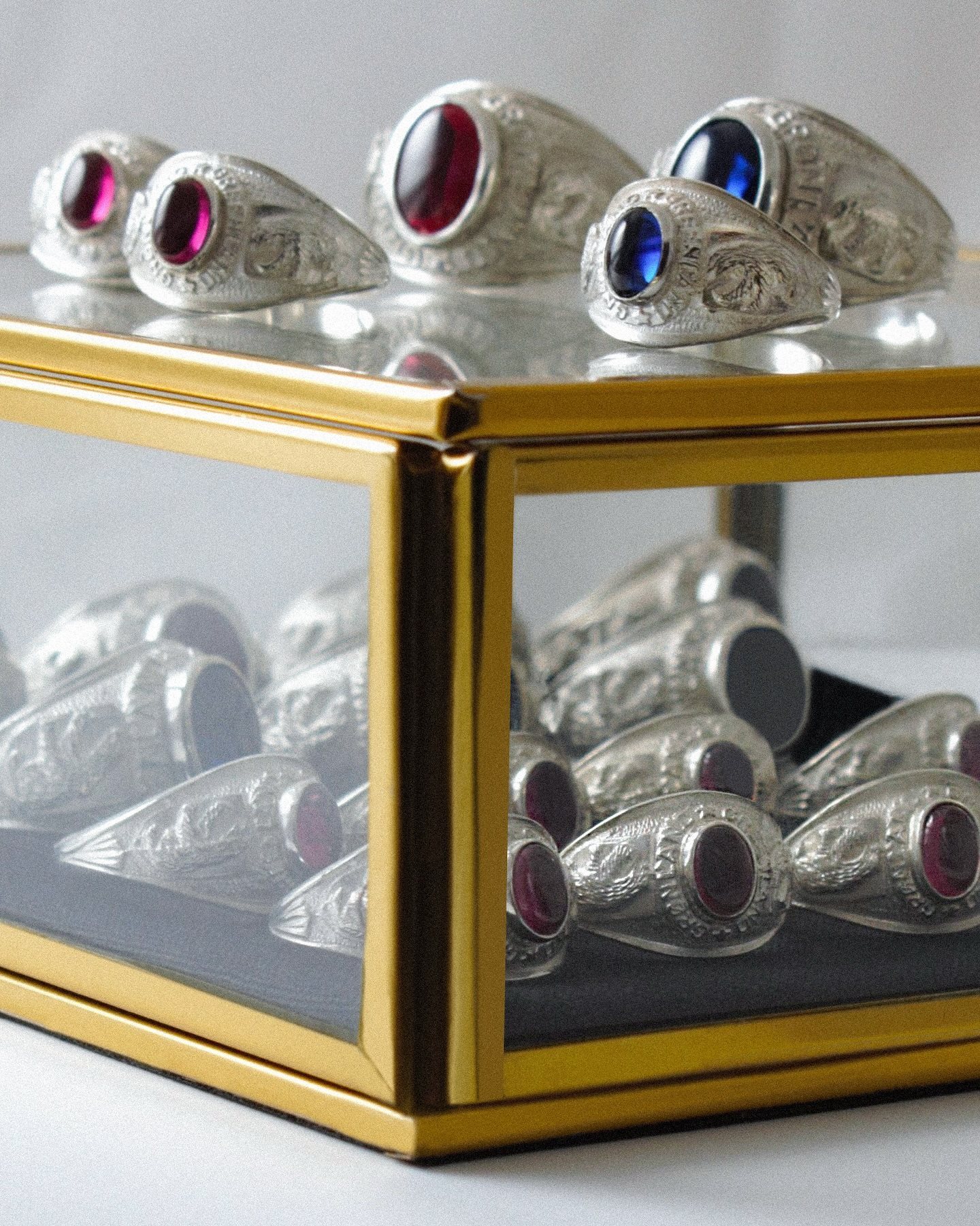 Ringen er smukt dekoreret med en cabochonslebet syntetisk rød rubin, der giver et elegant og dybglødende udtryk. På hver side af ringen prydes designet af en isbjørn. Ringen kan fås i sterling sølv, 8 kt guld og 14 kt guld.